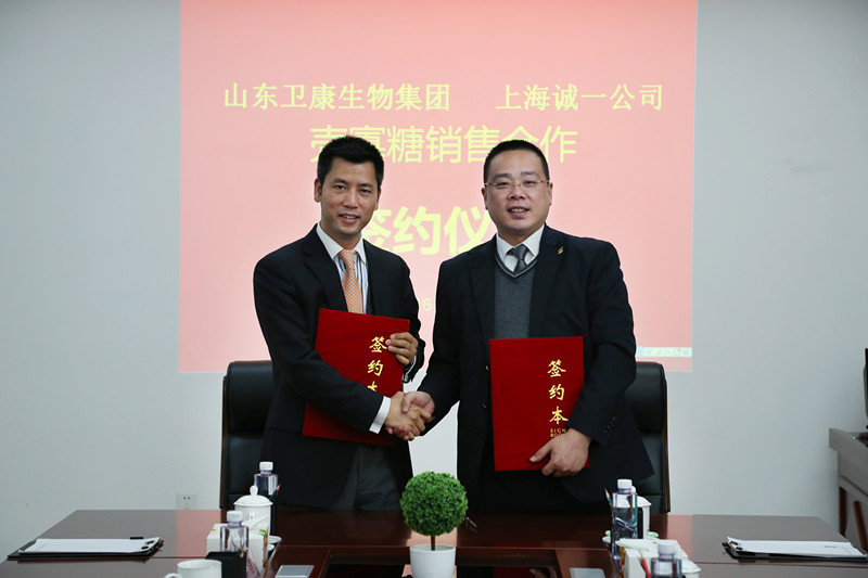 3月10日上午,山東衛康生物集團會議室內,衛康生物集團副董事長、常務副總裁劉中偉與上海誠一食品原料有限公司董事長李潑的手緊緊握在了一起。兩家企業正式簽署了《殼寡糖銷售合作協議》,邁出了共贏的關鍵一步。